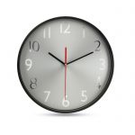 Large wall clock with aluminium dial and hands, protected by a glass lens. 1 AA battery not included.