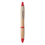 Push button ball pen with bamboo barrel and ABS fittings. Blue ink.