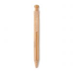 Push button ball pen with bamboo barrel and wheat straw (50%) and ABS (50% ) fittings. Blue ink.